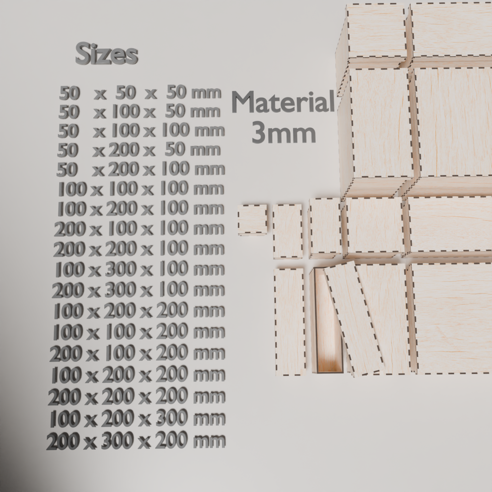 15+ box sizes ranging from 50mm to 300mm